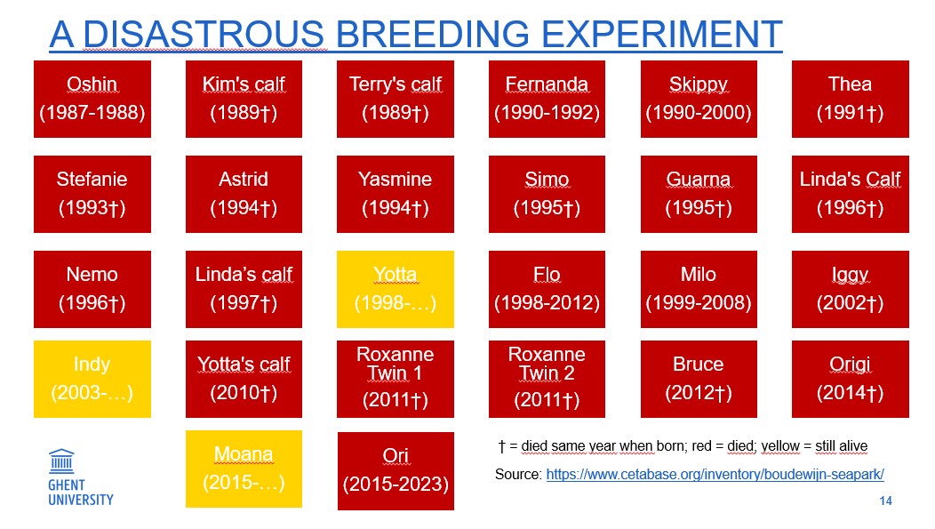 Az a dia, amely megdöbbentette a flamand parlament képviselőit a Boudewijn Seapark tenyésztési gyakorlatáról (Koen Margodt)