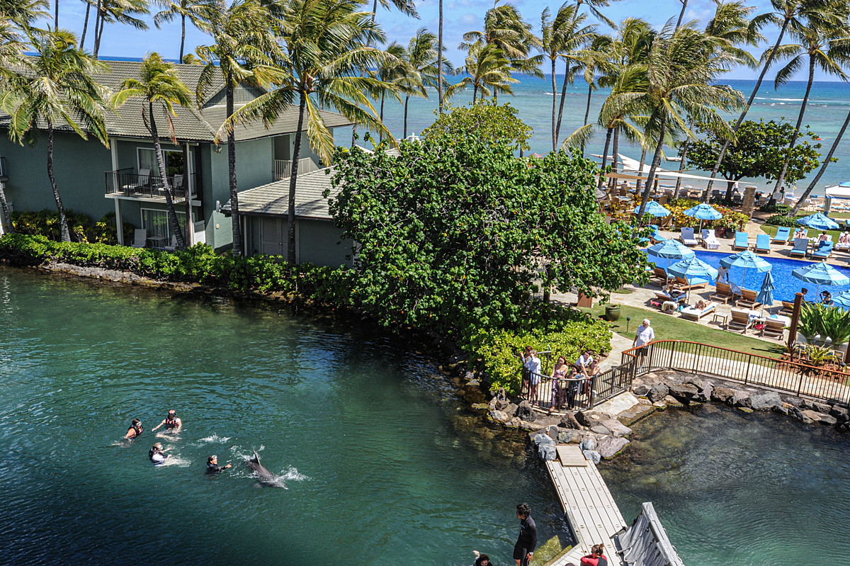 A turisták több száz dollárt fizetnek azért, hogy delfinekkel úszhassanak — mint ebben a hawaii szállodában is. (Jo‑Anne McArthur / We Animals)